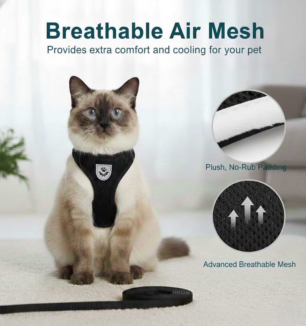 Yes! Itβs made with soft, breathable mesh that reduces pressure on the neck and keeps cats cool during longer walks or outdoor time.
